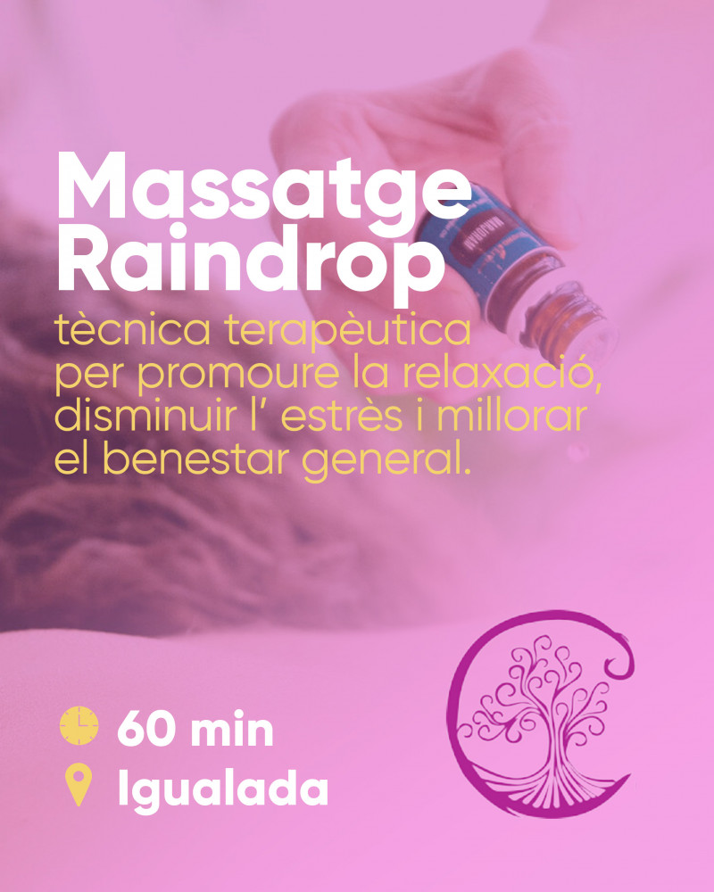 El massatge Raindrop és una tècnica terapèutica que combina elements de l’aromateràpia amb tècniques de massatge suau. S’ utilitza per promoure la relaxació, disminuir l’ estrès i millorar el benestar general.
