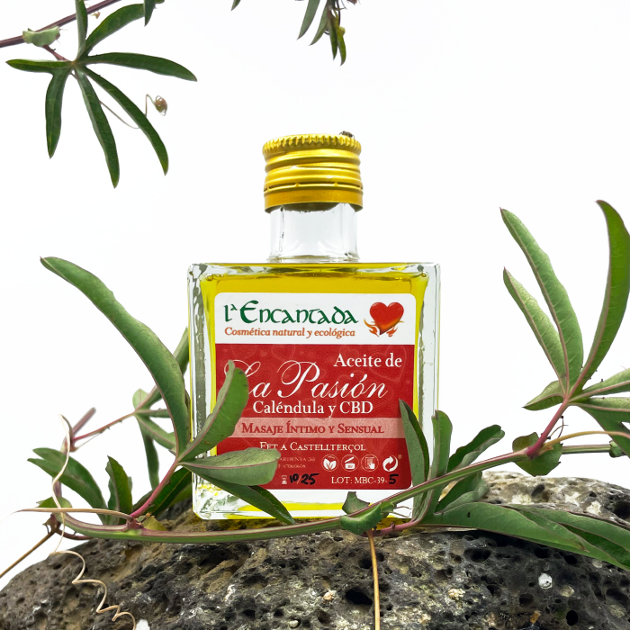 L’Oli de la Passió de La Encantada combina el millor de la natura amb ingredients acuradament seleccionats, com ara Calèndula, olis essencials i CBD, per oferir-te una experiència sensual única.